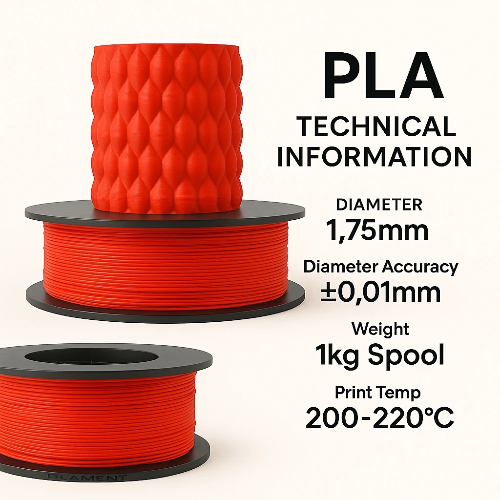 Yüksek kalite, kolay baskı ve üstün uyumluluk sunan bitkisel kaynaklı PLA+ filament. ±0,03 mm çap toleransı ile sorunsuz ektrüzyon; 190-220 °C nozul sıcaklığında çalışır. Amatör ya da profesyonel FDM 3D yazıcılarda fonksiyonel parçalar, prototipler ya da dekoratif modeller için ideal, çok canlı renk ve çeşitliliğine sahip bir filamentdir.