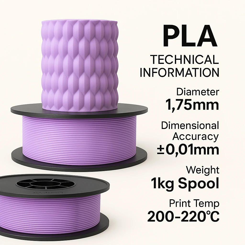 Yüksek kalite, kolay baskı ve üstün uyumluluk sunan bitkisel kaynaklı PLA+ filament. ±0,03 mm çap toleransı ile sorunsuz ektrüzyon; 190-220 °C nozul sıcaklığında çalışır. Amatör ya da profesyonel FDM 3D yazıcılarda fonksiyonel parçalar, prototipler ya da dekoratif modeller için ideal, çok canlı renk ve çeşitliliğine sahip bir filamentdir.